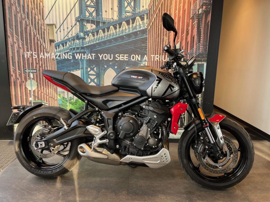 W様へご納車させていただきました! 本日はおめでとうございます✨ 3気筒エンジンのパフォーマンスと卓越した俊敏性をもつトライデント800! 満タン時でも200kgを切…