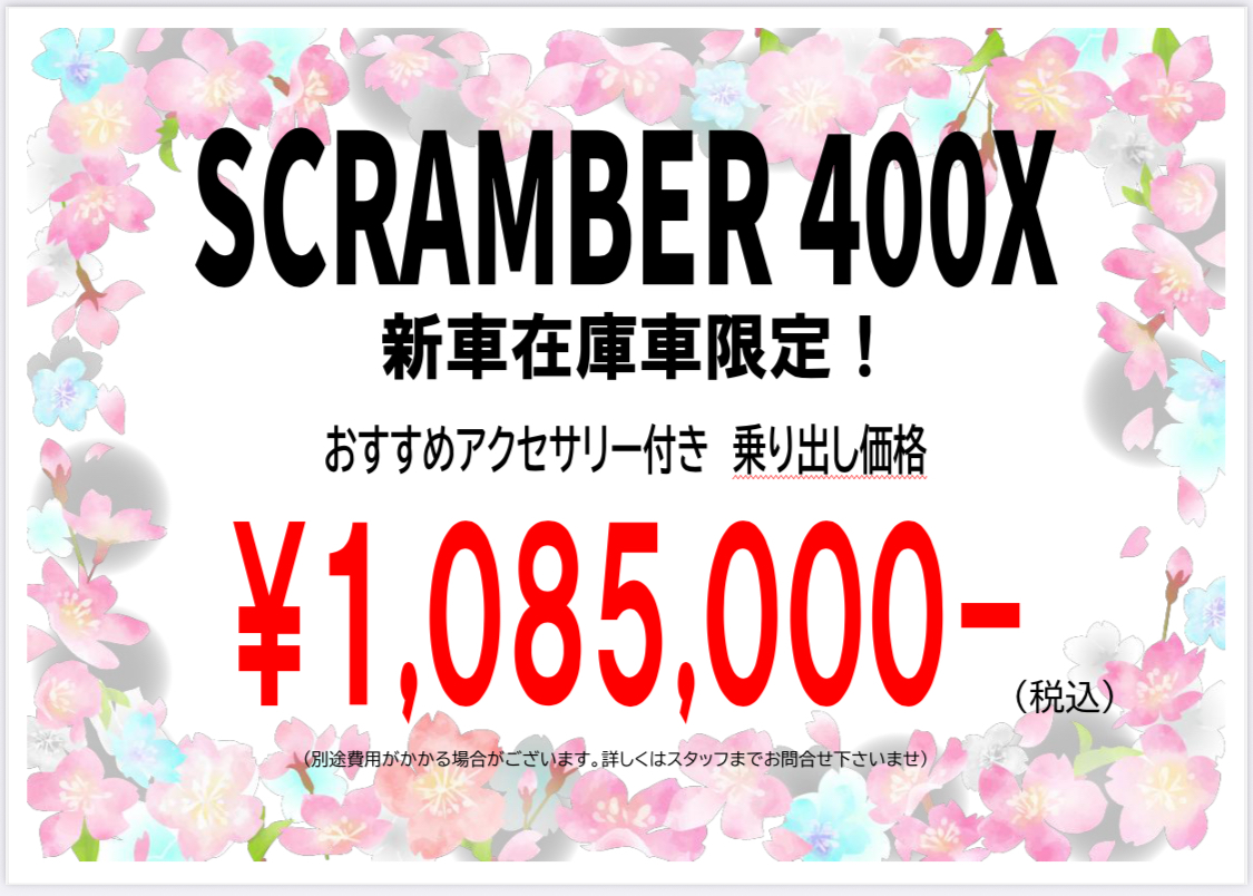 スクランブラー400X 在庫新車限定!